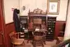 A part of the museum is dedicated to showing how life was along the canal with its different businesses and entertainments. Small sets were built to show a bank, a tavern, a general store and a theater. One room portrayed a canal master is at his desk, no doubt working out what the fee to be for a certain canal barge that is in the weighlock. Extra trunks were on display, samples of what a passenger might use to travel with. The museum displays over 50,000 items: tools, canal boat equipment, models, furnishings, household items, costumes, sketches, drawings, paintings, photographs, rare books, maps, receipts and manuscripts. Then we could go outside the main building into an enclosed room, and step on to a life size replica of a canal boat, called the Frank Buchanan Thomson. An elevator, fully painted to look as if one is standing on the bow of a canal ship, goes up one floor to more displays and a lecture hall.