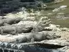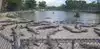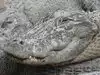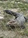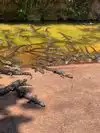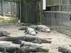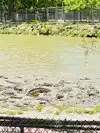 View of alligators in a park and concrete parks with baby alligators.
