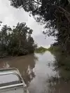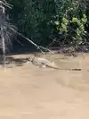 Boat. The driver didn't slow and went right over one. Forget seeing wildlife, the boat scares it away. At the start of the trip, the driver pointed out a large lizard sunning itself on a raised area in the canal. In our opinion, it was a fake. It was in exact same position when we returned, zero movement at any point.