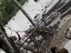 A hovercraft ride with slides that fill the boat with water.
