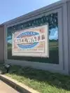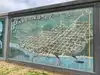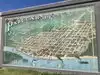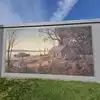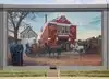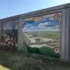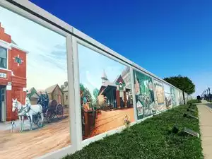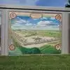 Neat little walking history of the area portrayed by artists renderings on the flood wall. Small town pride on display.