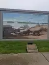 The exterior of the floodwalls have many artistic depictions of early historical events that took place along these banks here at Paducah. They showed the evolution of the area throughout this areas growth into the interesting river city it is now. Below each mural is a marker telling the story that is represented in the picture.