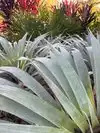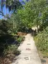 So many reasons to love this botanical garden! First I am SO grateful they open at 7am. This means we can enjoy the gardens before the heat of the day. Second - -the pathways are wide, smooth, and frequently have interesting shapes embedded into them. Third -- roses in February! Fourth -- cool and unusual specimen trees such as Pride of Bolivia, Gumbo Limbo, white powder puff, and Joy Perfume. Fifth -- they allow dogs! Lots of artistic touches such as mosaics and a lovely little succulent 'fountain.' Oh and I almost forgot -- they allow dogs on leashes. There is also the kalimba near the parking lot so you can make a little music, lots of varieties of palm trees, bromeliads, and a small herb garden.