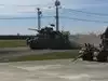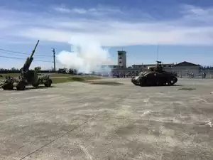 The tanks started to roll about 1:00pm. The first tank drove down the length of the parking area in front and then turned around and fired. Loud and lots of smoke, but not shocking. But then came the smaller tank. It went down and then backed up all the way to just past where we were standing. Unlike the first tank which had a count down, this one didn't or we couldn't hear it. All of a sudden if fired and it was increditably load and the shock force from the explosion was like someone hit you in the chest.