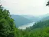 A beautiful stretch of water surrounded by wooded hills and mountains easily accessible on route 28. There are some good stopping places where you can see the view and driving over the dam links in with some trails (including the Appalachian Trail) though we did not find that we got a better view of the lake from these as they stay in the trees for a long time. Good food outlet at Fontana Village too.