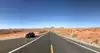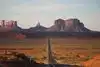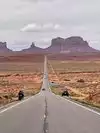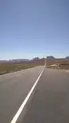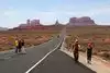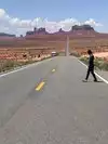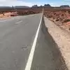 As we came over the hill heading west on US highway 163, we saw dozens of people standing in the middle of the road. We thought there had been a horrible accident. As we drove closer, we could see it was just tourists risking their lives re-enacting the highway scene from Forrest Gump. With cars doing 70 to 80 mph down this grade, there is going to be a serious accident here. With that being said, it is a very scenic part of the highway.