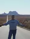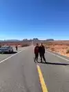 Luckily the road was quiet so we could stand in the middle and take a photo with monument valley in the background.