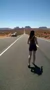 As we drove on hwy 163 to Mexican Hat, UT I was looking for the spot on the highway that was shown in Forrest Gump. Approaching the crest of a hill, we noticed 15-20 young people in the middle of the road. We slowed down and parked in a turn out area. We noticed the tourist were back in the middle of the highway taking pictures.The view that we hadn't seen was BEHIND us (facing south back to Monument Valley. It is a nice view of the monuments as we took pictures as well.