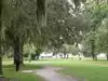 Wide open spaces. Beautiful old trees. Lots of history. Plaques to tell you about the different areas of the park. Nice place for the kids to run around too