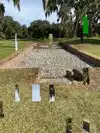 The NPS site looks like this is a small park with barely anything remaining but we found lots to look at. We found that the plaques had lots of interesting information. There are lots of house foundations remaining and the original settlers are usually known. Lots of tidbits of their lives. One house is a current excavation and it was interesting to see the dig and the screens used to check all the excavated material. There are cannons by the for remnants and it is easy to imagine an enemy ship on the river. There is a short movie and displays of the items that have been found. Interesting to realize that this colonial fort was instrumental in having the area in British control instead of Spain. It is an intriguing thought. Also, it is free and the grounds and live oaks are marvelous.