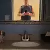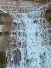 You progressively step down some stairs into the center of a man-made waterfall. It's really cool when you hit the bottom because you hear water all around you. Very refreshing.