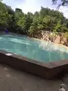 The final feature is a slightly sunken pool with spray heads at intervals, creating a spray level about 3 feet above the pool, along with shifting rainbows if it is sunny out.