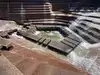 The first and most popular feature is a sort of inverted ziggurat where the water flows down into the lowest point. There are block stairs (no railings) via which you can access the low point and look up at the terraces. We descended here and checked it out. It was interesting but can get crowded.