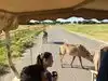 It was 112 F outside so it didn't really matter that we had the AC on. There were plenty of animals to see, though obviously most of them stayed in the shade. Those that were out came eagerly to the vehicle. The café is the halfway point on the route. It has refreshments and a great view of the park. The giraffe's were very comical and would literally eat right out of your hand.