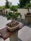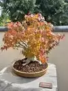 My husband and I recently traveled from PA to spend a week in Michigan. Being a garden lover (especially Asian gardens), I had to visit here. We visited the day after Labor Day, a day with very light attendance, which allowed us to get a very close parking spot (and being a Tuesday, it was open late). The construction going on at the entrance was a bit of a distraction, but we knew the grounds would be lovely beyond that. Once in the visitor’s center, the three separate lines (first to pay admission, then to have our tickets checked, and then finally to get a map—each stop just a few yards from each other) seemed unnecessary. We took the narrated, 45-minute-long tram ride first thing; it was enjoyable and saved much walking to see the sculptures. Their conservatory and Children’s Garden were nice, but our favorite area the huge Japanese garden. It featured a large pond ringed with pathways, boulders, waterfalls, decks, etc.—very picturesque. It wasn’t truly authentic in its design or plantings but still very pleasant. They had some bonsai trees on display, including one pear tree that actually produced fruit (see photo).