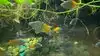 Nice Rocky pool with views of swimming from above, and around the back a wall if glass to see them swimming below the surface.