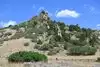 The parking areas shown on the map vary from just a few spots to 20+ spots. As a result, we drove around for quite a while before finding a place to park by the Scotsman trailhead. We walked a moderate trail to get among the rock formations. That central area was extremely crowded with people.