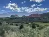 We visited this gorgeous natural area on a Friday, and it was very busy. Nevertheless, it is a stunningly beautiful park, and the red rocks, lush green mountain trees and meadows, deep blue skies, and fluffy white cotton candy clouds are not easily forgotten.