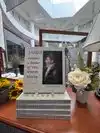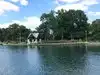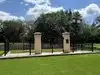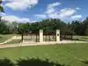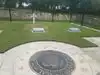 To view gravesite, walk to the left of the pond. The rose garden is to the right. Benches are strategically placed for those who may need a break.