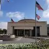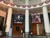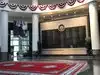 Retractable bollards control entry in the museum’s circular drive adorned with US flags. While security personnel and metal detector greet you in the entrance, museum docents await in the large lobby filled with Presidential portraits, gift shop, tables, and restrooms.
