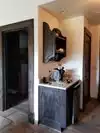 The villa common area was just as beautiful with couches, table and chairs and a gas fireplace. It also had a refrigerator stocked with water, soda, juices and my favorite the sanpellegrino lemon and orange. A Keurig with plenty of k-cups with their own coffee, utensils, plates, wine glasses, mugs and napkins.