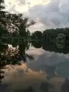 Outdoor seating with nice evening live music and walk up ordering with server delivery located on the banks of a large pond: a great place for a relaxing evening in summer.