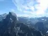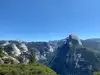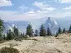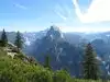 Looking out from Glacier Point gives yiu a different , panoramic view of both the Yosemite vally and the Sierras. Looking one direction and you can see the east end of the vally. Turn and you can see the waterfalls and granite domes that mark this place. The drive can seem long but The scenery is a mix of rocky vistas on one side and the occasional alpine meadow on the other. There are spots where you can get out and stretch you legs. The point is also the end point of two strenuous hikes down to the valley floor, the Four mile trail...actually about 4.4 miles...and the neatly 9 mile long Panoramo trail, great if you feel up to it.