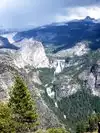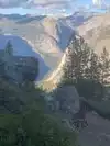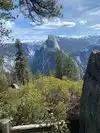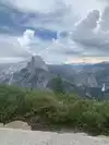 Amazing view of Half Dome! There was a thunderstorm coming through when we were up here and it made it all the more beautiful and exciting (and a little scary since we were up so high!). Several different areas to get good views (there's a waterfall too),and a small gift shop with ice cream treats.