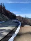 45 minute drive from the valley floor. Freezing cold and lots of snow still there. Wheel chair access. About 1/4 mile walk to the scenic overlook.