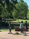 Kids can explore at the creek or, as they cross the walking bridge, look for small fish or turtles. Near that bridge, and a little further along, at the fountains, you'll find numerous bench swings. Sit a while and breathe deep. Listen to the birds singing. Watch the squirrels playing. Put your arm around somebody (but only if they're with you : )