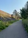We walked up the path a bit and got to see a rock wall called the “Castle in the Park”. It’s a 300 foot long retaining wall built by the Civilian Conservation Corps (CCC) who did a lot of work in this and a number of Minnesota State Parks. Pretty impressive wall (and parking area above). Not many people here. An impressive reminder of all the CCC did for us all.