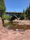 The falls area is a short walk and accessible for all. The water was very low but there were still a falls and the kids had a great time exploring and playing around. we got some fantastic pictures and really enjoyed the nice morning. Not a ton of people but when we left about an hour later there were a lot coming in and the parking was full. There are trails you can take from this area to Lake Superior but it's about a mile hike. We decided to load back up in the RV and go down to the picnic area (a fee area) and have a short walk to the Lake to look for rocks and agates. Also very fun and a must-do! The flies were horrible during our trip out to the Lake but not a one at the falls.