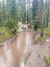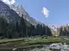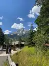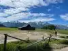 Very great long trails around the mountain. Beautiful lakes and grassland. The lake is nearby the mountain, and the scenery is great. The trails are all around the snow mountains.