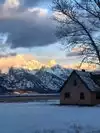 We were originally supposed to do a wildlife sleigh ride, but it was cancelled for low snow conditions. First week in December and they had snow, but not enough. So we decided to drive the national park. Go on a clear or mostly clear day for stunning views of the Grand Tetons mountain range. During the afternoon we didn't see much wildlife...apparently they lay down and rest during the afternoon. We went to see Mormon row and the famous Moulton barns. We drove past Kelly, and had a fabulous lunch at Dornan's in Moose. Then decided to take one last drive through the park on our way home. We put the Science School in as our destination as we heard it was a moose hot spot...But once we got out on the park's open roads, it was easy to see the moose at far distances. We spotted three different moose groups. It was amazing. One group was by the road so we were able to get a close (yet safe) distance away. I took zoomed in pictures sticking out of the car's sunroof. Seeing the moose with the sun was setting over the amazing Grand Tetons was beyond stunning.