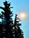 Here is the first trick to film directly into the sun: find a tree with a thick enough stump so that you can position yourself and not see the sun. If you can't see the sun, the sun can't invade the lens of your camera! Use the trunk fully to conceal the sun, and shoot what the lens gives you with the trunk framing to left or right.