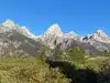 Absolutely beautiful! The Teton peaks are amazing and the meadows are gorgeous. The golden leaves of the Aspen trees, in all their yellow glory, against the powerful gray of the mountains is something I won't soon forget. We were lucky enough to see a bison, a moose and her baby, and many pronghorn sheep during our drive. Jenny Lake is absolutely serene and crystal clear! It truly is uplifting and joyful to take some time in the Grand Tetons park. Please note, however, that signage is a bit misleading in the park. Along the main road, before turning into GTNP, a sign says that Yellowstone is 55 miles away. Yes, it is... to the very border of Yellowstone. Old Faithful Geyser is another 1.5 or 2 hours away into Yellowstone. Also, within GTNP intself, many of the stopping points ( restaurants, gas stations, gift shops, etc.) are closed at this point in the year. The only indication of this is right at the entrance to the Park where you pay to go in. If you miss the posting, you will not know that the service area you're aiming for is closed. One last mention is that Jenny Lake is certainly worth stopping at. Smaller than Jackson Lake, it is nonetheless gorgeous. There is a sign saying that a good hike near the lake is 2.8 miles. Not being hikers, or even having water or such for a hike, we decided to do it. But we could not figure out what the 2.8 mile length brought you to. There are no further signs. It is clear to the eye that the lake is definitely a long hike to go all around, probably more like 10 miles at least. There was mention of a waterfall at some point, but again no signage to tell you where. We asked people coming the other way what their experience was. Many had hiked for a greater part of the day and since it was 3:30 p.m. or so, they did not advise going onward. (Plus, they probably summed us up as "newbies" too.) Hate to say anything at all negative about GTNP because the visit was something I will never forget... beautiful, wild, stunning. Just a few more signs or notices or such would make it a more time managed and safer experience.