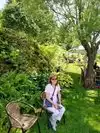 Relaxing , sitting next to babbling brook. If you prefer shade, many tables and chairs under pergola. Grapes still in the vine but probably for another month!