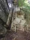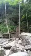 This Free State Park is the Bomb. A Rattlesnake on the trail. To the best of my knowledge this is the only Metal Spiral Staircase Hiking Experience Around. I have hike here during the winter when the staircase was frozen and icy. This is an outstanding hiking experience for it's diversity and uniqueness to get to the falls. It is a short 15 minute hike to the bottom but you will be sitting on your bottom at the tail end of the hike. This is a great swimming hole where you can actually swim under the waterfall. Make sure you are solid on directions before you depart because there is not cell phone service. No bathroom facilities you will need to go behind a tree. Caution to anyone with bad knees there is a lot of challenging areas of the hike.