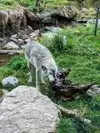 The bears were active playing together in the water. Then the oldest bear came out by herself! They hide food for them to find! We enjoyed this experience very much! The wolves were active as well.