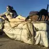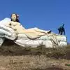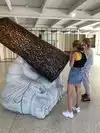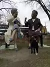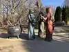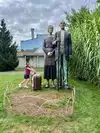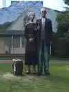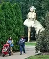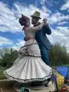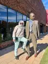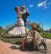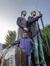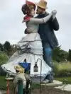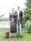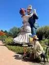 couple sculpture. At the 30-foot American Gothic, I photographed my wife pretending to steal a suitcase almost her height.