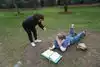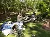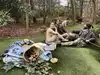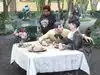 They have life sized, fully painted human sculptures doing everyday things hidden within the foliage. Examples are couple of students with books who have fallen asleep,or a businessman stretched out on a bench, napping with the New aYork Times over his head.