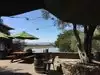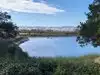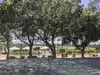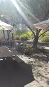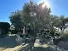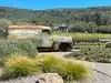 Very nice terrace shaded by olive trees and overlooking the pond.