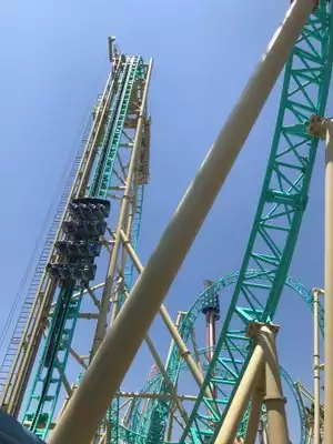 This roller coast is a blast but a bit scary. Straight up and then you hang... facing the ground. Puts your heart in your throat. Then a bunch of twist and turns. A little short but a lot of fun for advanced roller coaster riders.