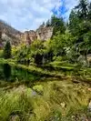 Hanging Lake is worth the climb. The trail is shaded in spots and follows a creek the whole way up. It is a little steep, but well worth the view at the top. Be sure to take the little side trail to Sprouted Rock. A permit is required for this trail.