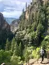 My wife and I picked up a couple of delicious sandwiches sodas & water and rented some Bikes from Glenwood Adventures. They dropped us at Bear Ranch and we Biked the canyon back towards Glenwood Springs with the intention of Picnicking at Hanging Lake. We arrived at the trail head chained our bikes and started our hike. A kind soul on his way down offered me his walking stick (a 4 foot thin branch) I gave it to my wife and found another. Trust me this came in handy! This hike doesn't mess around its almost immediately a tough stony climb. There are several spots to stop and take a break . There are even a few benches scattered along the trail. You will cross a total of 7 bridges on your way up. This comes in handy for figuring your progress. When passing the last bridge on your way up, its about 10 to 15 minutes ahead. You will be aided by some rails which will help you along this last stretch. Once you are there at Hanging Lake, you will realize how worth it the hike was. It is simply breathtaking. Go ahead and do yourself a favor and climb the extra way up to the waterfall above. You will not be disappointed. The hike back down is a whole lot easier!