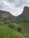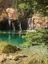 Moderate to strenuous hike to beautiful hanging lake with falls .natural minerals make water so blue. Surrounded by Rick walls. Restrooms at base. Extremely poor parking. Need to bus folk in from external lot.