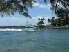 We visited here before and after our cruise in January. Both times we were there, the beach was clean and very quiet. The water was clear and calm and it was fun to watch the boats come and go.
