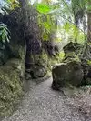 The park was clean and there were people from all around the world there, all in awe. There were also forest areas you could walk around in and they were basically rainforests in the mountains full of ferns and other trees and plants. We saw a cool type of pheasant cross our paths while trekking around there. There are also "lava tubes" you can go into that are apparently places that the lava carved out a cavern to allow it to pour out on the other side of a mountain wall.