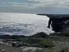 Next was the Kīlauea Visitor Center. We picked up a few maps, looked around and started off. We drove down, about 45 minutes to the Puna Coast. It a cliff that overlooks the ocean. It's called a bridge(was 2 now only 1). It's a sea arch in the cliff wall. They were made by cooling lava, wind and crashing water. Had some lunch. We brought our own. Then started back up.