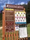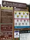 Big parking lot. Pit toilets. $5 parking fee via credit card machine. One half mile hike up to lighthouse, most of it paved. Nice pictures of the lighthouse with a zoom lens from a highway pullout about 1/4 mile south on Hwy 101, right before Sea Lion Caves.
